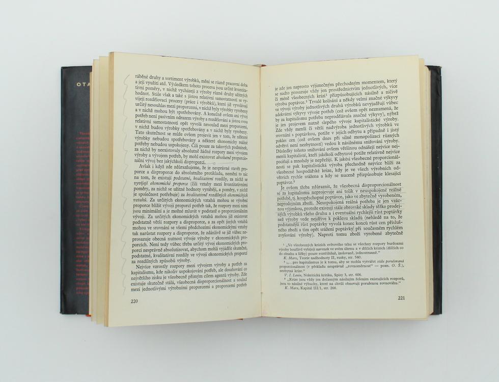 Autor chtěl původně napsat knihu o socialistické ekonomice, hlavně o jejích zbožních vztazích. Poznal však, že některé základní kategorie jsou vykládány v literatuře buď zkresleně, nebo zjednodušeně. Zejména ekonomika, ekonomické vztahy, vlastnictví a ekonomické zákony, o nichž pojednává v prvních čtyřech kapitolách. Tu objasňuje, jak je chápe marxisticko-leninské pojetí. Pátá kapitola se zabývá ekonomickými potřebami a zájmy, šestá politikou. V nich řeší i vzájemný vztah mezi ekonomikou a nadstavbou i vedoucí roli ekonomiky. Jeho kniha nejen komplexně vykládá kategorie, jež Stalin chybně interpretoval, ale i vyvrací revizionistické a buržoazní teorie. Tvoří první, obecně teoretickou část chystaného díla o socialistické ekonomice.