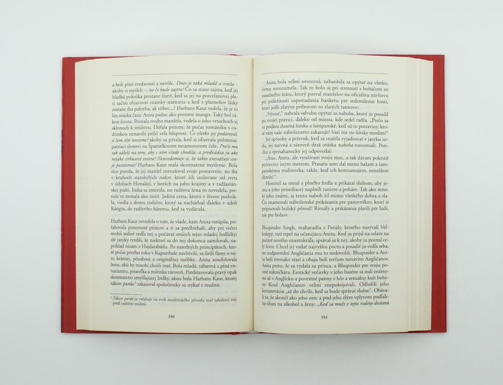 Príbeh Anity Delgado, španielskej tanečnice, ktorá sa vydala za indického mahárádžu a takmer cez noc sa stala indickou princeznou, je rozprávaný na základe skutočných udalostí. Spolu s Anitou sa čitateľ prenesie do Indie obdobia excentrických mahárádžov a vstúpi do sveta rozprávkovej nádhernosti, do sveta, ktorý dnes už neexistuje. Príbeh Anity a mahárádžu z Kapurthaly nie je len romantickým rozprávaním o úskaliach lásky, ale aj príbehom, ktorý poukazuje na rozdiely medzi kultúrami, na osobitý vzťah Indie a Európy, na nástrahy, ktoré odlišnosť oboch kultúr človeku prináša. V neposlednom rade ide o pôsobivé rozprávanie o konci jednej epochy indických dejín, v ktorom sa stretávame s konkrétnymi ľuďmi, s ich problémami, túžbami a vášňami – vášňami, ktoré často vedú k činom, za ktoré sa človek neskôr hanbí a ktoré ho ničia. K zrade, klamstvu, podvodu…