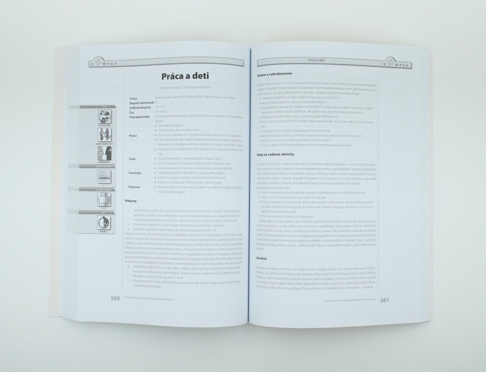 Kompas je manuál pre výchovu k ľudským právam, určený vedúcim skupín mládeže, učiteľom a ďalším pedagógom. Predkladá námety a aktivity podporujúce zapojenie mladých ľudí a rozvíjajúce pozitívny postoj k ľudským právam v ich bezprostrednom okolí. Výchova k ľudským právam je tu chápaná v širokom zmysle – ako vzdelávacie programy a aktivity orientované na podporu rovnosti v ľudskej dôstojnosti. Manuál je výsledkom práce tímu autorov a pedagógov z rôznych odborov a odlišných kultúrnych prostredí. Je založený na metódach zážitkovej pedagogiky a neformálnych vzdelávacích prístupoch, ktoré kladú dôraz na tých, ktorí sa učia, na prostredie, v ktorom žijú, a na problémy, ktoré ich zaujímajú. „Domnievam sa, že človek nepatrí svojmu štátu alebo svojej ríši. Domnievam sa, že sme všetci ako členovia ľudského rodu jedným veľkým spoločenstvom. Tým skôr dnes, keď vstupujeme do éry jedinej globálnej civilizácie. Domnievam sa, že nikomu z nás nemôže byť ľahostajné, čo sa deje s niekým iným. Existuje totiž vyššia hodnota, ako je štát, a touto hodnotou je práve človek. štát, ako je známe, má slúžiť človeku, nie naopak. Medzinárodné právo chrániace jedinečnú ľudskú bytosť by malo byť nadradené medzinárodnému právu chrániacemu štát.“ Z predslovu Václava Havla.
