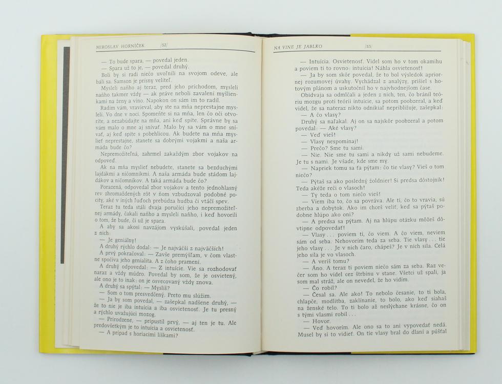 První slovenské vydání. Typické Horníčkovo vyprávění o vztahu mezi mužem a ženou. V nevelké společnosti několika manželských dvojic, které se spolu občas scházejí na popovídání, pojedení i popití, vystupuje do popředí František a jeho žena Marta. Žijí spolu již mnoho let, a jejich manželství je přiměřeně kořeněno drobnými neshodami i tím, jak si navzájem vidí do duše a dovedou si jeden druhého dobírat. Napětí vyvolává především Františkův vytrvale hlásaný názor, že muži jsou hybnou silou dějin, a že kdyby osudy lidstva závisely na ženách, vysedávali bychom dnes u ohňů doby kamenné. Marta reaguje na Františkovy výpady shovívavým úsměvem a v její mysli se rodí příběhy s historickými tématy.