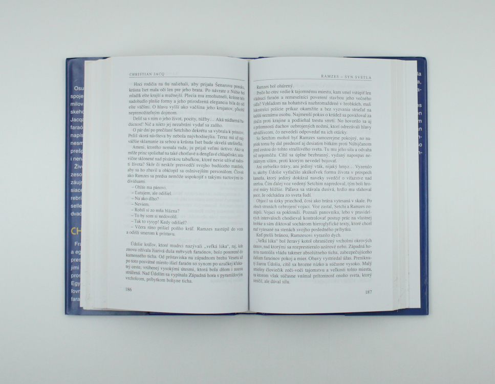 Keď sa hovorí o veľkosti starého Egypta, okamžite sa vybaví jedno meno: Ramzes. Bol to faraón, ktorý panoval vyše šesťdesiat rokov. V tejto chvíli má Ramzes iba štrnásť rokov. Jeho otec Setchi, faraón vážený a uctievaný svojím ľudom, dokázal vybudovať z Egypta najmocnejšiu ríšu na svete. Kto však nastúpi po ňom? Jeho starší syn Šenar, ľstivý a vypočítavý, alebo Ramzes, prudký a vášnivý? Setchi začne do najvyššej funkcie tajne zasväcovať svojho mladšieho syna. Množia sa skúšky a nástrahy. Unikne Ramzes intrigám svojho brata? Dokáže správne zvoliť medzi bujnou kráskou Iset a tajuplnou Nefertari? Môže sa spoľahnúť iba na niekoľko priateľov: Mojžiša, hebrejského spolužiaka, rovnako vznetlivého ako on sám, Setaua, zaklínača hadov, pisára Ameniho… Francúzskeho spisovateľa Christiana Jacqa si postava slávneho faraóna tak podmanila, že napísal o ňom rozsiahlu, nesmierne strhujúcu knihu, prešpikovanú zradou, láskou i nenávisťou. Životopisný román o Ramzesovi sa teší veľkému záujmu čitateľov a dlhé mesiace bol na prvom mieste rebríčkov francúzskych bestsellerov. Bol preložený do 24 jazykov.