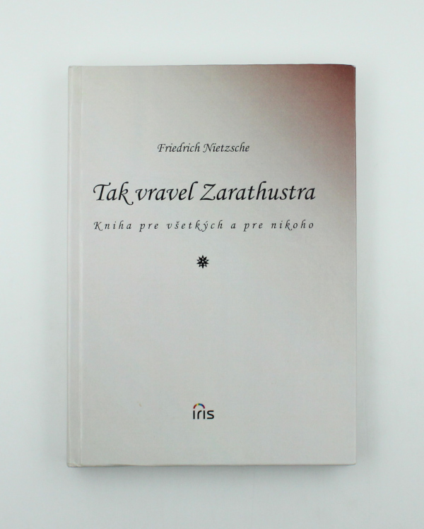 Nietzcheho dielo Tak vravel Zarathustra vychádza v slovenskom jazyku prvý raz. Obsahuje kritiky morálky založenej na kritike človeka ako indivídua s deformovanými vlastnosťami, ktoré z neho robia baránka namiesto dravého vtáka. Cieľom má byť nadčlovek, ktorého obraz je filozofický mýtus individualistu konajúceho mimo akýchkoľvek noriem a princípov. Je krutý, nezhovievavý a tvrdý. Je to človek budúcnosti, ktorý sa vyznačuje predovšetkým vôľou k moci a ktorý stojí mimo dobra a zla. Jeho historickým prototypom je Cesare Borgia a Napoleon. Nietzsche v predloženej práci hlása príchod nadčloveka a ideu večného návratu: Hlásam vám nadčloveka. Človek je čosi, čo má byť prekonané. Čo ste vykonali, aby bol prekonaný. .. ? Mýtus o nadčloveku je evanjelium plnosti života, je protikladom predstavy o mase, otrokoch, slabých. .. Kniha je určená všetkým, ktorí vedia oceniť krásu filozofického textu zvýrazneného silou básnickej metafory.