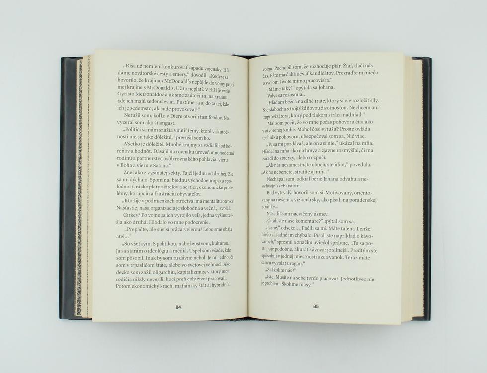 Vitajte v strhujúcom, zábavnom a temnom svete, v ktorom sa niečo zásadné zmenilo. Kedysi písal dejiny víťaz. Teraz dejiny píše ten, kto chce zvíťaziť. Guru propagandy poskytne hrdinovi životnú šancu. Mladý muž prijme lákavú ponuku a stane sa plateným internetovým trolom. No rýchlo zistí, že vo vojne príbehov niet víťazov. Drie v továrni na hlavné správy a tvorí nové mapy sveta. Sníval o rýchlych peniazoch, no teraz mu hrozí, že stratí lásku, tvár aj vlastné meno. Krátky román o dlhej ceste do halucinačného sveta za zrkadlom.